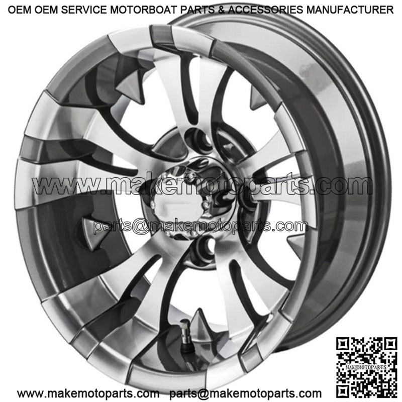 Revenge 10″ Warlock Gun Metal Gray & Machined Golf Cart Wheel 3:4 Offset