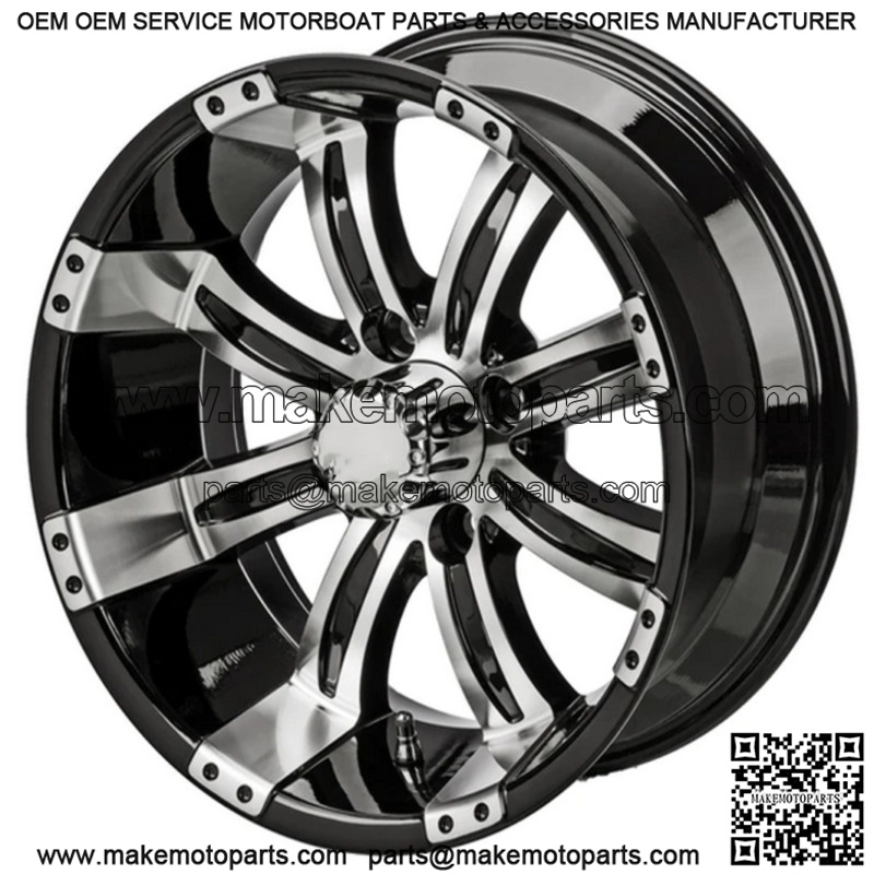 12″ Casino Black & Machined Golf Cart Wheel Center Cap included Wheel Dimensions: 12X7 with 4×4 bolt pattern and 3+4 offset Lug Nuts sold separately