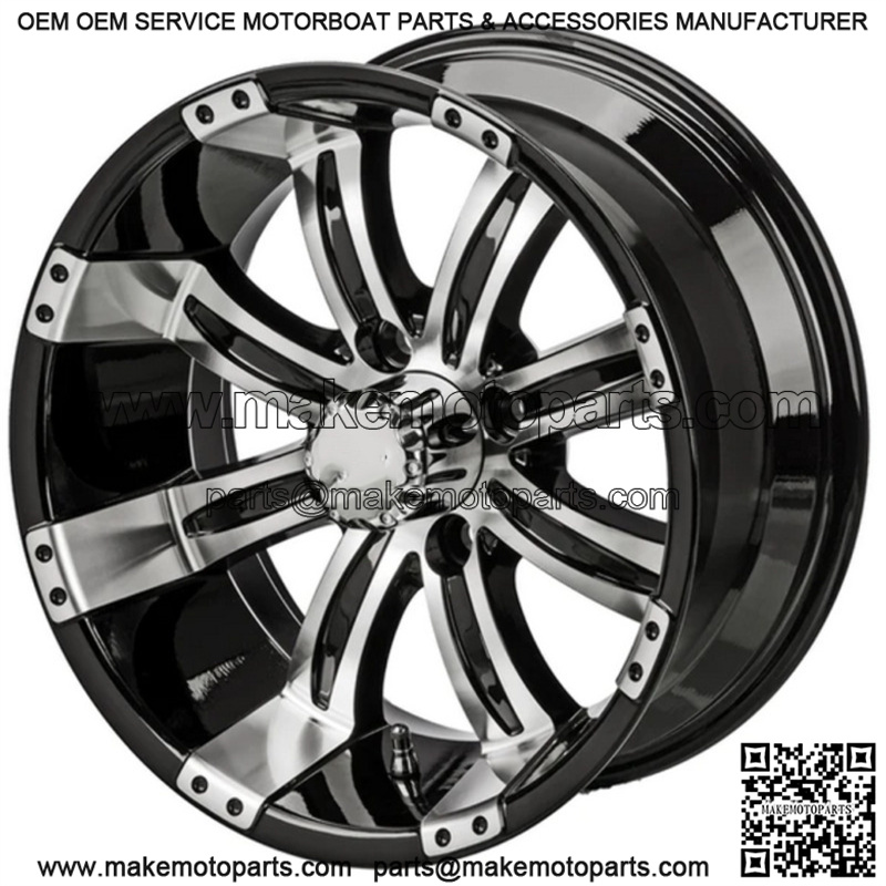 14″ Casino Black & Machined Golf Cart Wheel Center Cap included Wheel Dimensions: 14X7 with 4×4 bolt pattern and 3+4 offset Lug Nuts sold separately