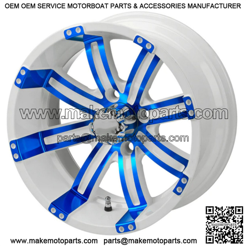 14″ Casino Blue & White Golf Cart Wheel Center Cap included Wheel Dimensions: 14X7 with 4×4 bolt pattern and 3+4 offset Lug Nuts sold separately