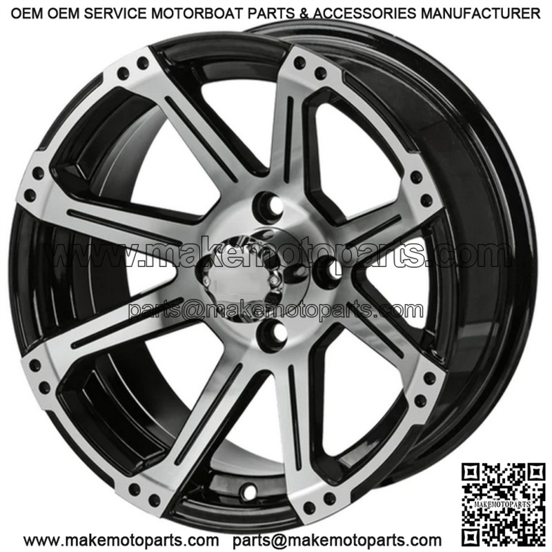 14×7 Rampage Black & Machined Golf Cart Wheel 3:4 Offset Center Cap included Wheel Dimensions: 14X7 with 4×4 bolt pattern and 3+4 offset Lug Nuts sold separately