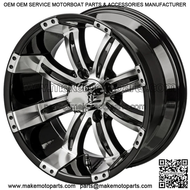 15″ Casino Black & Machined Golf Cart Wheel Center Cap included Wheel Dimensions: 15X7 with 4×4 bolt pattern and 3+4 offset Lug Nuts sold separately