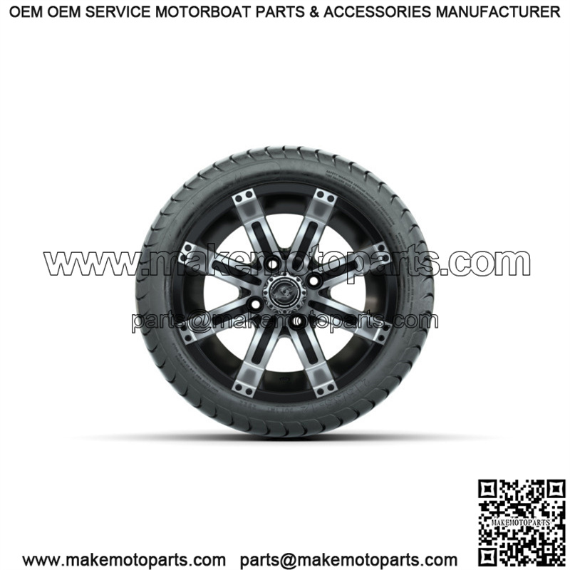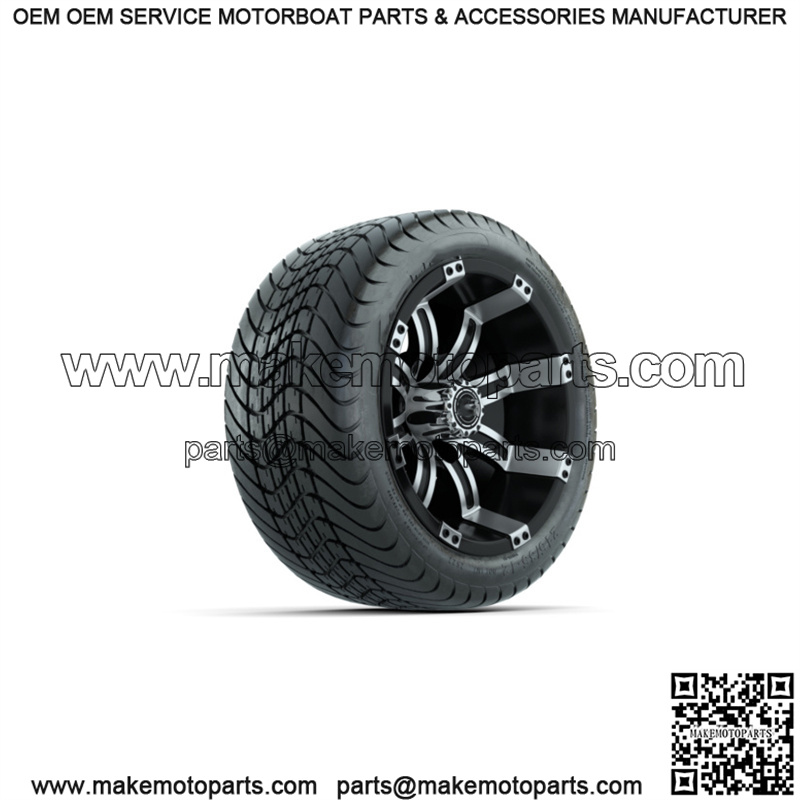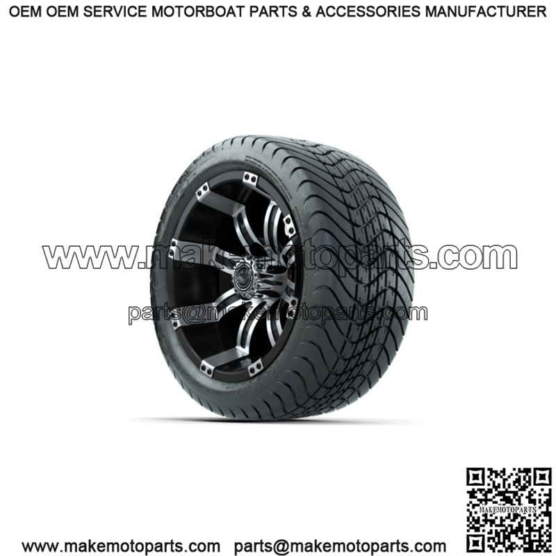 Set of 4 12″ Tempest Black/Machined Golf Cart Wheels & 215/35-12 (18″) Tires
