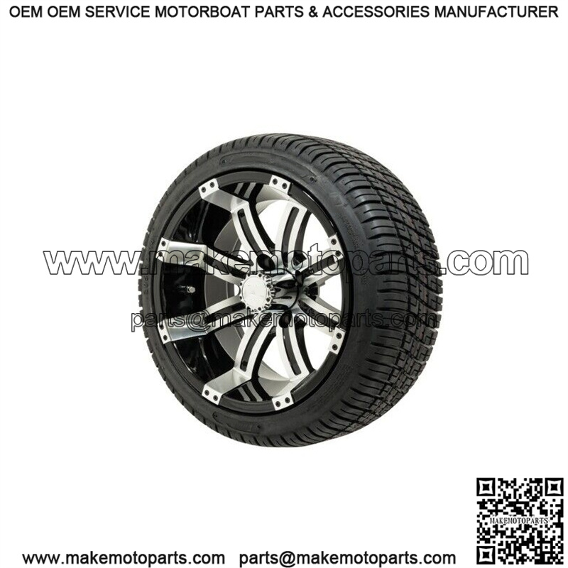 Set of 4 14″ Tempest Black/Machined Golf Cart Wheels & 205/30-14 (18″) Tires