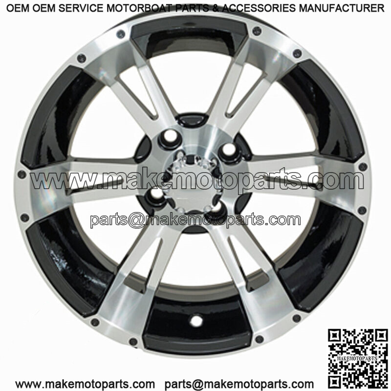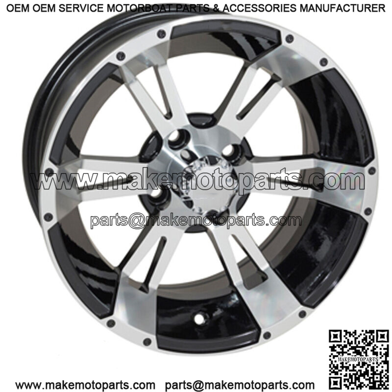 Set of 4 Golf Cart Yellow Jacket 14 inch Machined & Black Wheel 3:4 Offset