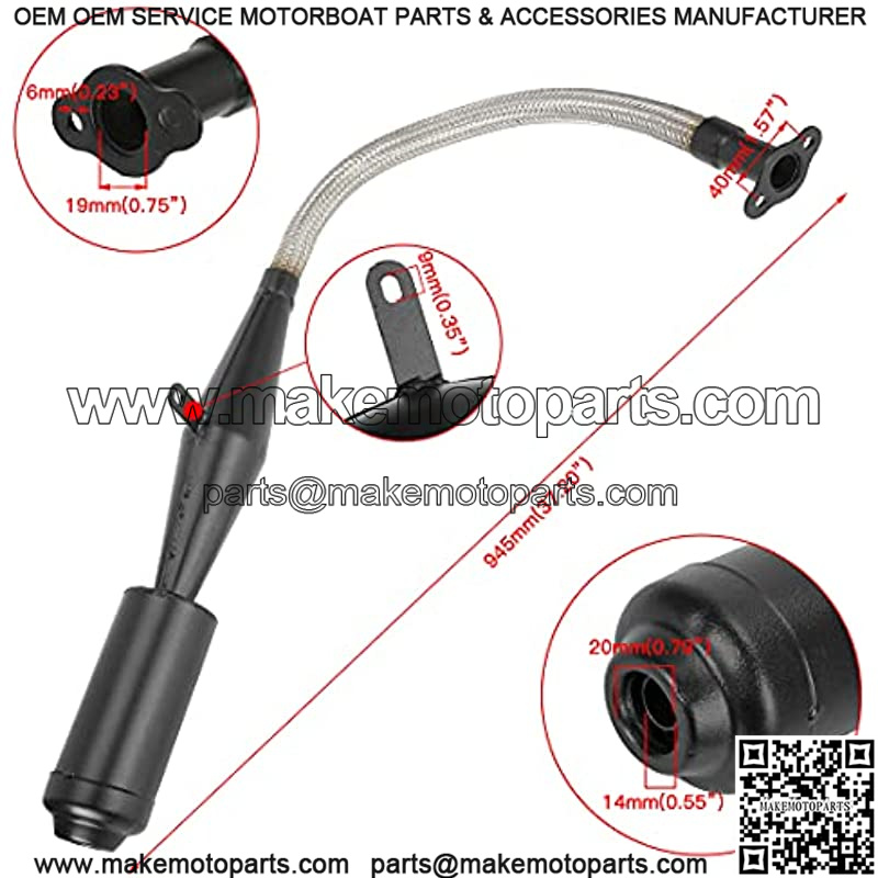 Stainless Steel Flexible Exhaust Muffler Pipe Silencer Gasket for 2 Stroke 49cc 60cc 66cc 80cc 100cc Engine Gas Motorized Bicycle Motor Bike Black