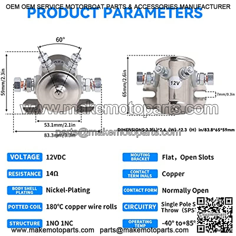 Stylemafia Max 300A Continuous Duty Solenoid Relay Nickel-Plating For Golf Carts, Winch, Marine In Rush 12VDC Resistance is 14??, Capacity is 10.2W, Contacts:Normally Open (NO)/ 12VDC WITH 2 COPPER POINT Replaces:70-111224,3635820, 1114208, 1114218, 1114223, 1114534, 1114547/ Bracket:Straight;Spst, One circuit: Off – On, Bracket mounting:Holes 5/16 x 19/32 2-13/64 on center Our Coil Roll is using 180?? copper wire, Cover is Nickel-Plating, Meet Environmental Plating Requirment, And Avoid Rusting, Shining Max Transient current can be 300A, but Continuous Working Current recommend under 150 Amp/ WARRANTY: 90days Warranty and Free Return and Full Refund Note: Normally Make 80A as Working Current, Need Break 5 sec on, 50 min off