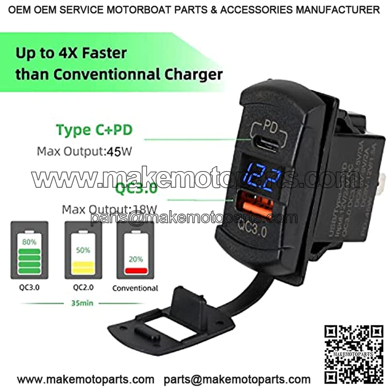 ??Widely Compalitity??This QC 3.0 USB charger socket fits for 12-24V car, boat, marine, motorcycle, ATV, RV etc. Suitable for charging mobile phone, GPS, digital camera, PDA and other USB accessories, backward-compatible with QC 2.0 &1.0, provides standard charging for non-Quick Charge devices.