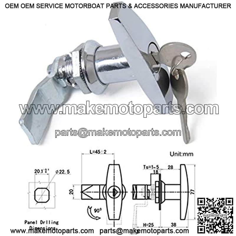Package include: 1 x T-handle lock, 2 x keys.