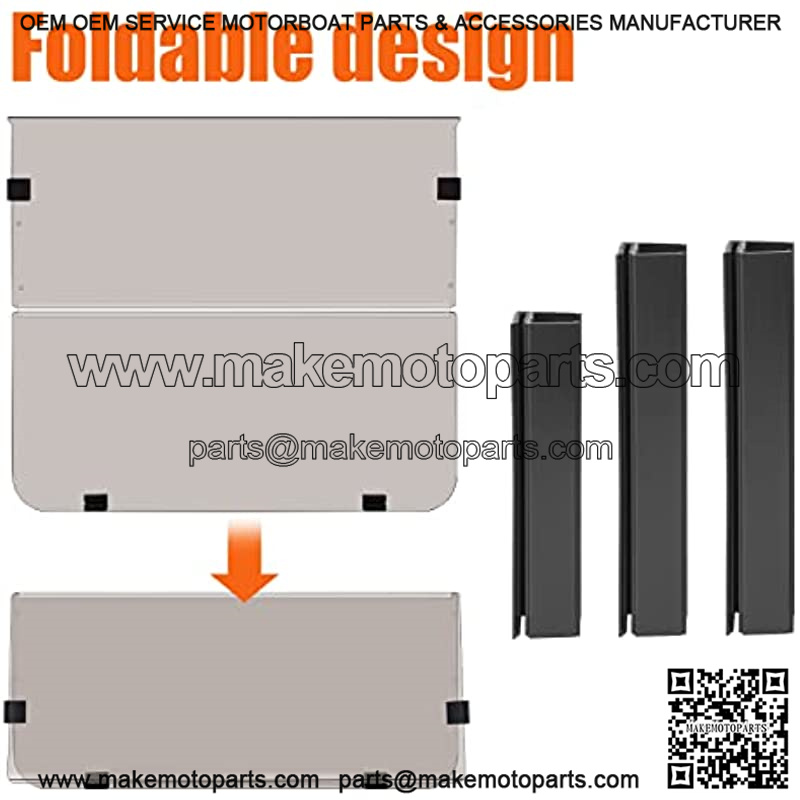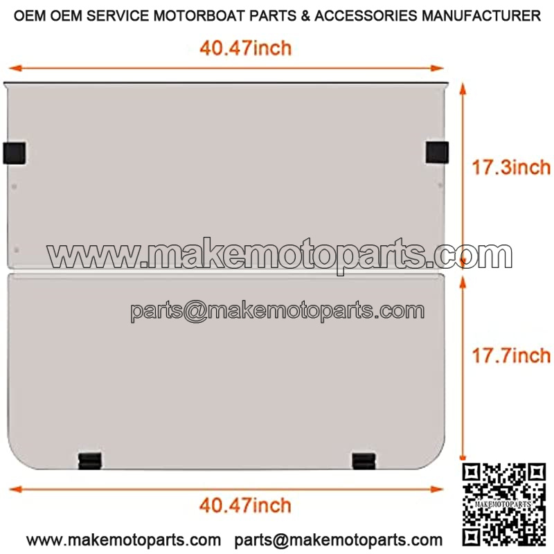 Package: One Set Windshield packed and all mounting hardware Included. Dimension approx 40.47″W X 35″H, Fold Down design for Convenience.