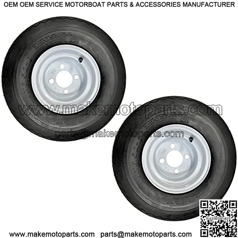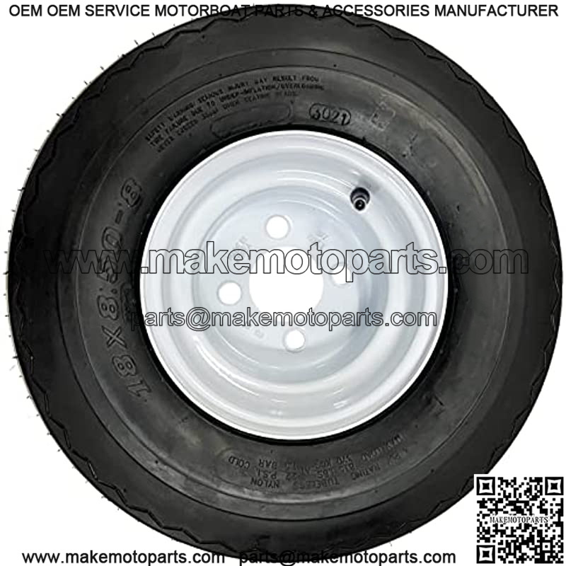 Pre-Mounted Trailer Tires & Wheels. 2-Pack Trailer Tires & Rims Bias Ply 18-8.50-8 Load B 4-4 White Conventional 8. Tire Size: 18-8.50-8. Aspect Ratio: 8. Section Width: 18. Load Range: B. Tire Weight Rating: 760 Lbs.. Maximum Pressure: 35 PSI. Tire Composition: 4 Ply. Tread Depth: 8.4/32″. Sidewall Description: BSW. Internal Tire Type: Tubeless. Rim Size: 8″ X 7″. Bolt Configuration: 4 Lug 4″ Center. Offset: 0″. Center Bore: 2.83″. Rim Construction: Steel. Rim Style: Conventional. Rim Color: White. Lug Value Hole: 0.45″. Hub Stud Size/Nut Requirement: 1/2″-20 60 Degree Cone Nut. Torque Specifications: 50-75 Ft/Lbs.. Warranty: Two Years. Pack Quantity – 2-Pack