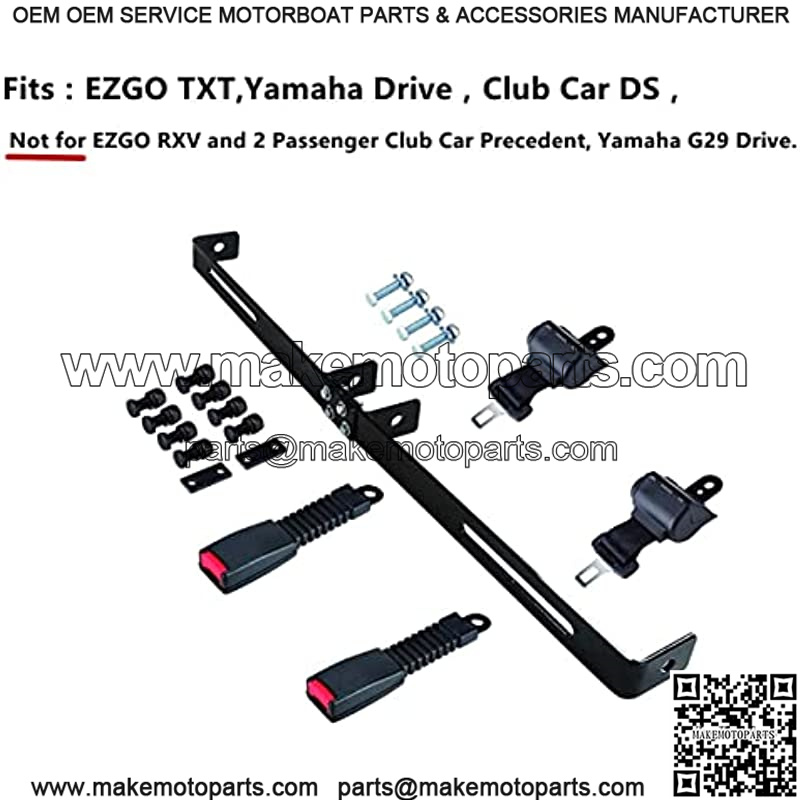 Retractable seat belt bracket kit fits most 2 seats golf cart, such as EZGO TXT , Club Car DS and Yamaha.Note:Not fit club Car precedent/Yamaha G29/Drive/Drive2 and EZGO RXV models.
