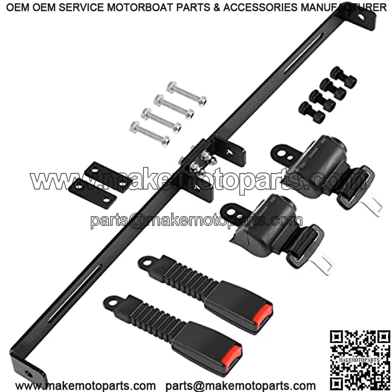Universal Golf Cart Retractable Belts 2 Sets (42″) and Bracket Bar Kit(35″ x 6.9″) for 2 Passenger EZGO Yamaha Club Car TXT RXV DS Precedent Black