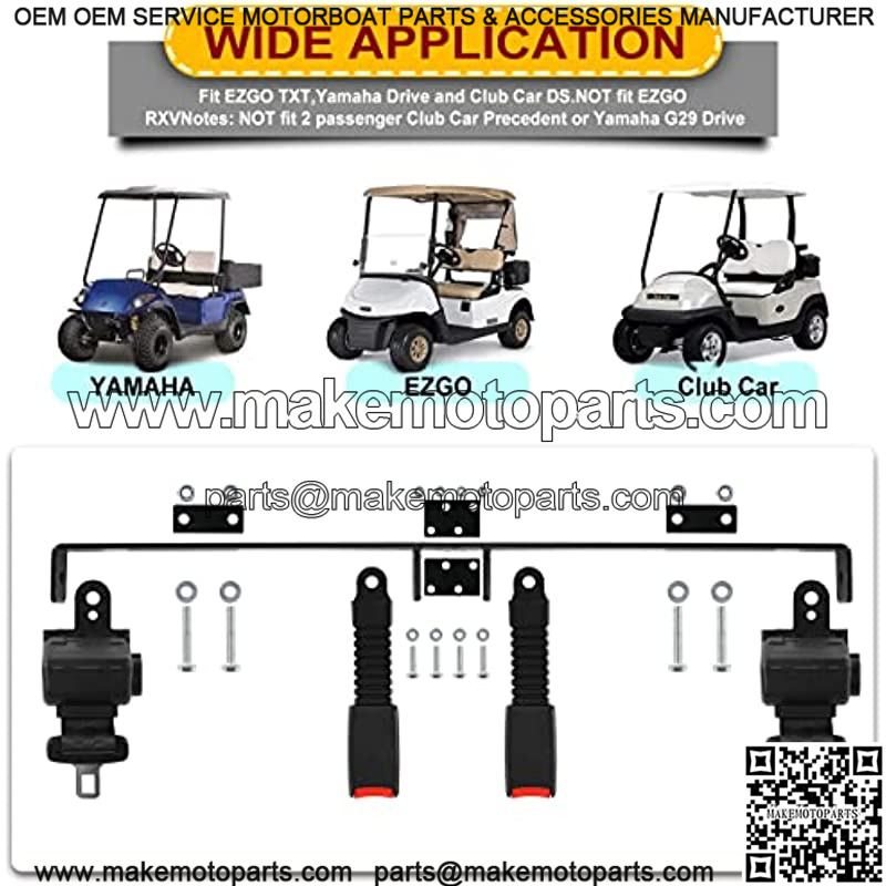 Product Description Brand: SHUNCHENXIANGModel: Golf Cart Retractable Belt Kit with BracketApply For: Most 2/6/8 Seat GolfCarts , Club Car, EZGO, YamahaMaterial: High Quality IronBracket size: 88.9*17.5cm??35*6.9inch??Retractable Belt length: 106.68cm (42inch)Color: BlackFunction: Improve ride stability, comfort, reduce some bumps Package & Local Fast Shipment1. The parcel will including 2pcs* bracket, 2sets* retractable belts,1set* installation accessories, 1pc* Manual2. The item will be shipped from our local warehouse, about 3-6 dayson fast delivery Installation & Warranty1. Please check if the provided bracket size can be installed on yourcart1-1. This bracket is not fit for 2 Passenger Club Car Precedent,Yamaha G29 Drive,Drive2 and EZGO RXV models2. One month free return, replacement or maintenance if any qualityproblem within 1 year, If there any issue with it, don’t hesitate to contact usvia Amazon message , and we will response and solve it within 24-48 hour