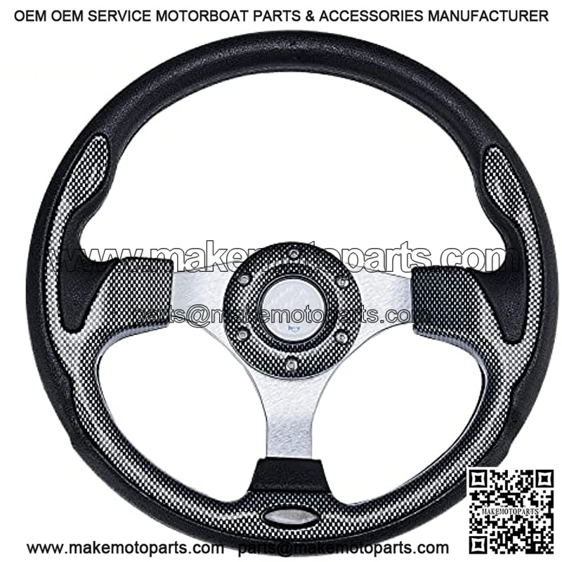 Universal Racing Steering Wheel for Golf Cart, EZGO Yamaha Club Car DS & Precedent , Aluminum with Horn Button for Car, 12.5″/320mm 6 Bolts Grip Vinyl Leather, black & carbon fiber