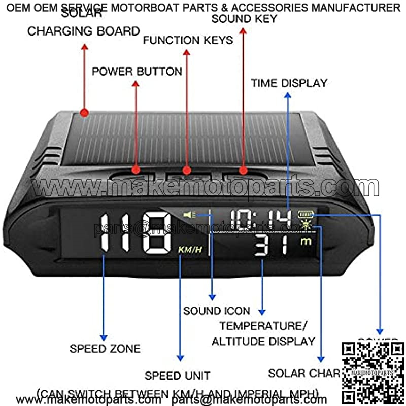 It’s the only real solar HUD GPS speedometer, can be powered by solar panel;