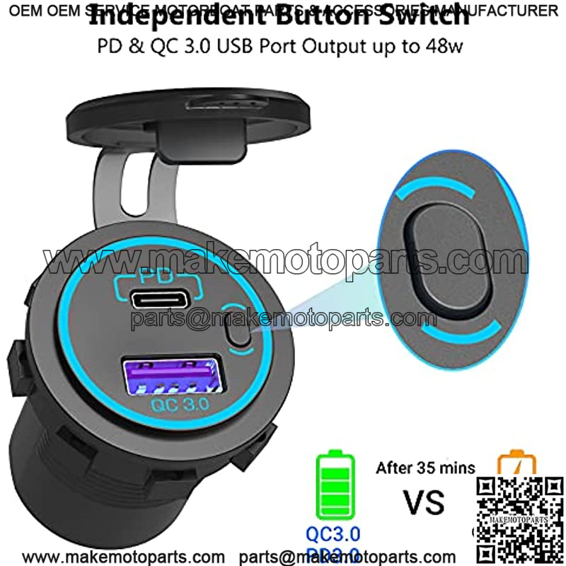 ![[Upgraded Version] 12V Cigarette Lighter Socket, Quick Charge 3.0 & PD 3.0 USB Charger Power Outlet with Button Switch, Waterproof 12 Volt Adapter for Car Motorcycle Boat Marine RV Golf Cart etc. - Image 4](https://makemotoparts.com/wp-content/uploads/2025/11/CDQ.009084.jpg)