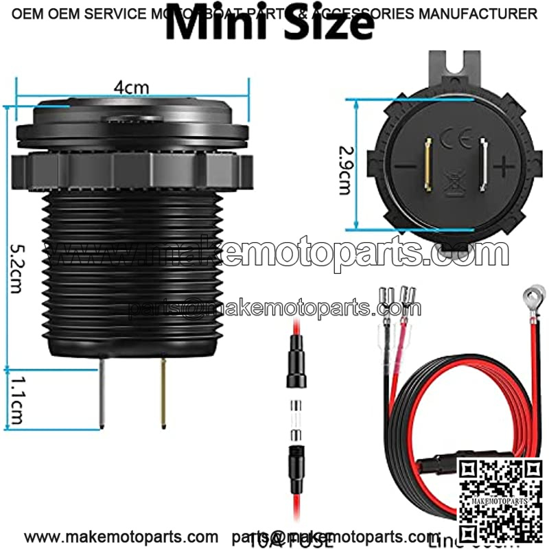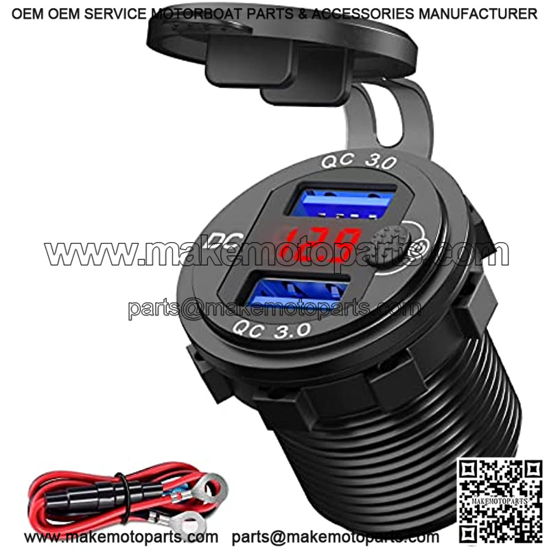 ![[Upgraded Version] Quick Charge 3.0 Dual 12V USB Car Charger, Aluminum Socket with Red Digital Voltmeter, Waterproof Car Outlet with Power Switch Button, for Marine Boat Motorcycle Truck Golf Cart etc - Image 2](https://makemotoparts.com/wp-content/uploads/2025/11/CDQ.007504.jpg)