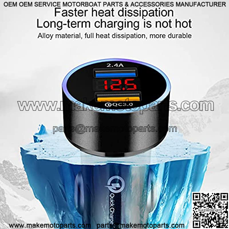 USB C Car Charger Adapter, Dual QC3.0 Ports Car Charger, All Metal Quick Charge with LED Voltage Display, Cigarette Lighter Car Adapter, Compatible with iPhone11 pro/Xs/Max, Galaxy Note 8/S9 and More