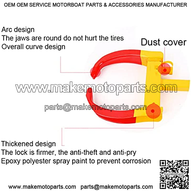 ??Thickened steel plate??: The main body of the wheel lock is cast with high-strength steel plate, which prevents the thief from starting.